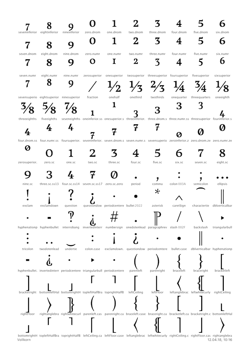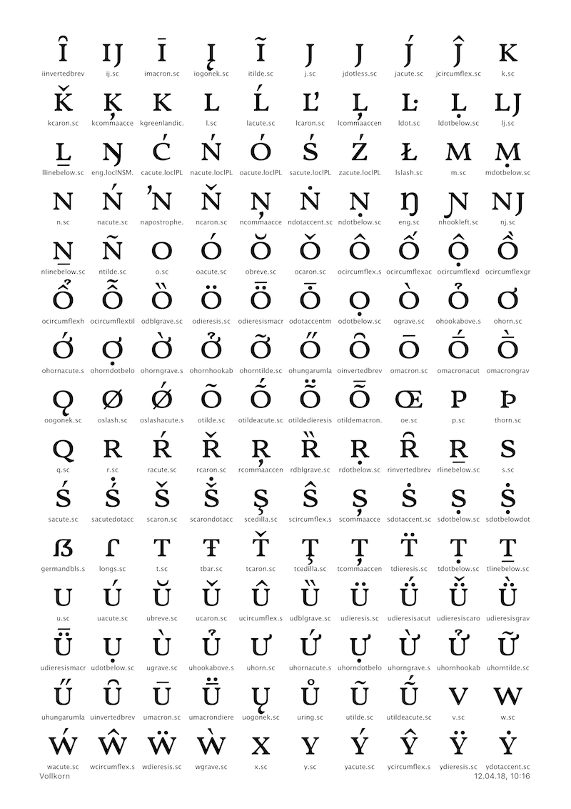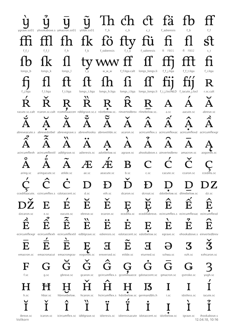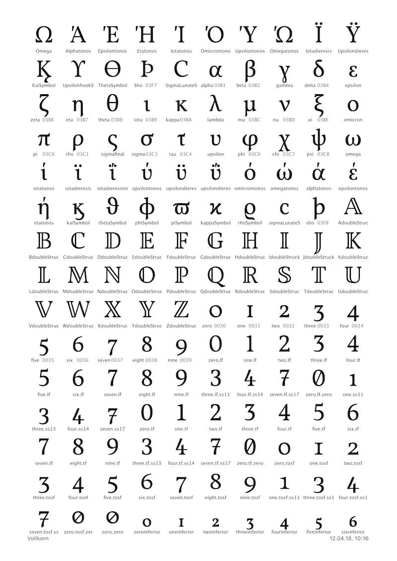 Vollkorn περιλαμβάνει πλέον Ελληνικά: Α Β Γ Δ Ε Ζ Η Θ Ι Κ Λ Μ Ν Ξ Ο Π Ρ Σ Τ Υ Φ Χ Ψ Ω Ά Ϋ α β γ δ ε ζ η θ ι κ λ μ ν ξ ο π ρ ς σ τ υ φ χ ψ ω ί ϊ ΐ …